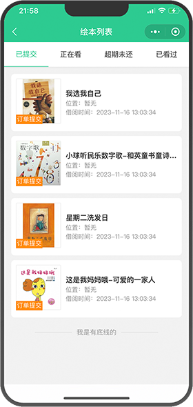 区分已提交、正在看、超期未还、已看过等借阅书籍列表