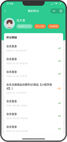 展示积分数量、明细,在线兑换积分礼品