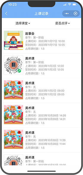 展示上课记录、消课情况