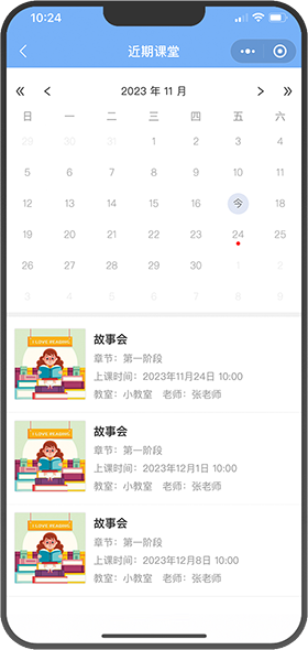 展示已排课的近期课堂,在线约课报名