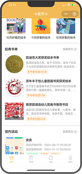 有系统内置书单智能展示,也可后台添加自定义书单