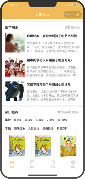 输入偏好、年龄,由系统智能推荐书籍,一键借阅